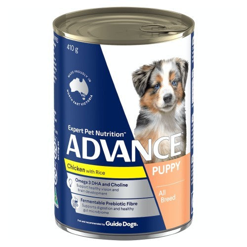 Advance dog food formulas deliver optimal nutrition for Australian pets using scientific knowledge and over 45 years of manufacturing experience. This super premium, Australian made, canned puppy food is complete and balanced to support the healthy development of your growing puppy. It is fortified with beneficial nutrients including antioxidants to help strengthen the immune system,