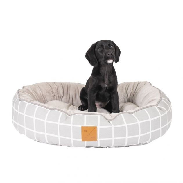 The Mog & Bone 4 Seasons Circular Dog Bed Grey Check is a versatile, reversible bed that can be used in both warm and cool weather. Your dog will be comfortable in all season as one side has a plush fleece interior for cold winter time, and the reverse side is made of cool, breathable cotton canvas, perfect for a hot day. With a soft a fluffy filling, the edges are raised so your dog can rest their heads and be super comfortable. With a fashionable grey check design, The Mog & Bone 4 Seasons Circular Dog Bed Grey Check is machine washable for easy maintenance.