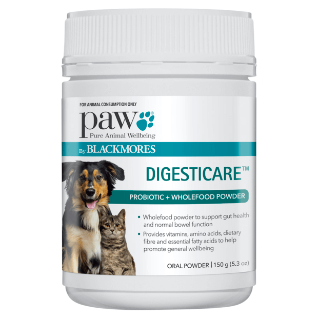 Intestinal dysfunction in dogs is commonly caused by the 'bad' bacteria dominating the digestive tract resulting in diarrhoea, flatulence, bloating and poor general health. PAW DigestiCare™ provides good bacteria to the restore intestinal balance. PAW DigestiCare™ also provides key nutrients including essential amino acids, vitamins, fatty acids and enzymes to enhance your pet’s health and vitality.