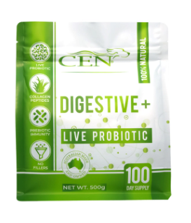 The inclusion of Live Probiotic S. boulardii contained in Digestive + is unique in that it can’t be killed by antibiotics. It helps restore your dog’s microbiome during and after antibiotic use and has been successfully used to treat Yeast Infections and Candida.