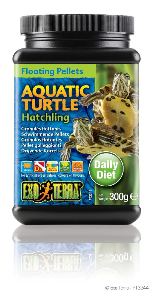 Exo Terra Aquatic Turtle Hatchling food is a nutritious micro-pellet diet made with Gammarus shrimp and fortified with vitamins and minerals. Exo Terra Aquatic Turtle Hatchling food provides all hatchling aquatic and semi-aquatic turtles with a rich source of nutrients including vitamins, calcium (multiple sources), quality protein and more. This high quality extruded floating pellet helps turtles to develop a hard shell due to both the natural and supplemented sources of calcium. Vitamin D3 is included and essential in ensuring proper absorption of calcium. These extremely palatable floating micro-pellets deliver quality nutrition. Exo Terra Aquatic Turtle Hatchling food includes “Advanced Yeast Extract” to help support a healthy digestive system.