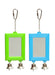 This bird toy features a shiny mirror with bells dangling off it to encourage interaction and play among your birds. The Kazoo Bird Rectangular Mirror With Bell features a clip that will make is easy to attach to the cage. The toy is suitable for birds of all sizes and available in an assortment of either blue or green that will brighten up your bird?s aviary.