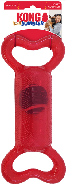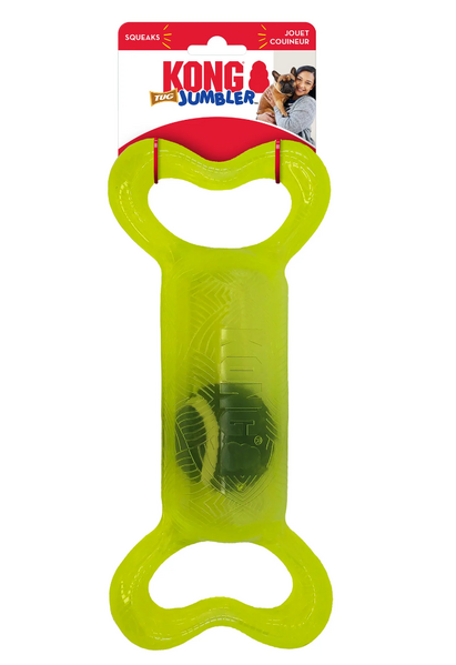 Encourage tug and fetch fun with your pooch! This durable toy is built to last through the toughest of play. The two handles makes tug fun easy and durable while the kong rubber is soft on your dogs teeth.