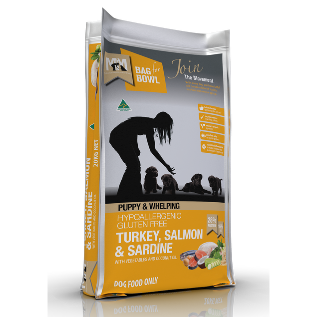 Meals for Mutts Puppy Turkey & Salmon provides all of the nutrients that growing pups need. Puppies require certain amounts of Omega 3, 6 & 9 to assist with brain function, cardiovascular health, teeth, nails, skin & coat. No artificial preservatives or colours, and only uses natural ingredients.